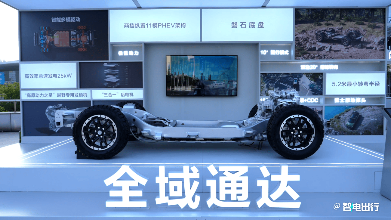 支撑合作的技术基石是东风猛士自主研发的M TECH智能越野架构。该架构包含三大核心模块:MORA滑板越野平台通过全线控技术实现车身与底盘解耦,支持模块化装配电池、电机等组件;MEGA POWER动力系统集成全球首创的差速锁与两挡变速箱电驱总成;M ATS全地形智能系统配备可调范围达150mm的空气悬架及后轮线控转向,能实现"蟹行模式"等特殊功能。这些技术恰好能解决Jeep品牌电动化转型中的关键痛点。