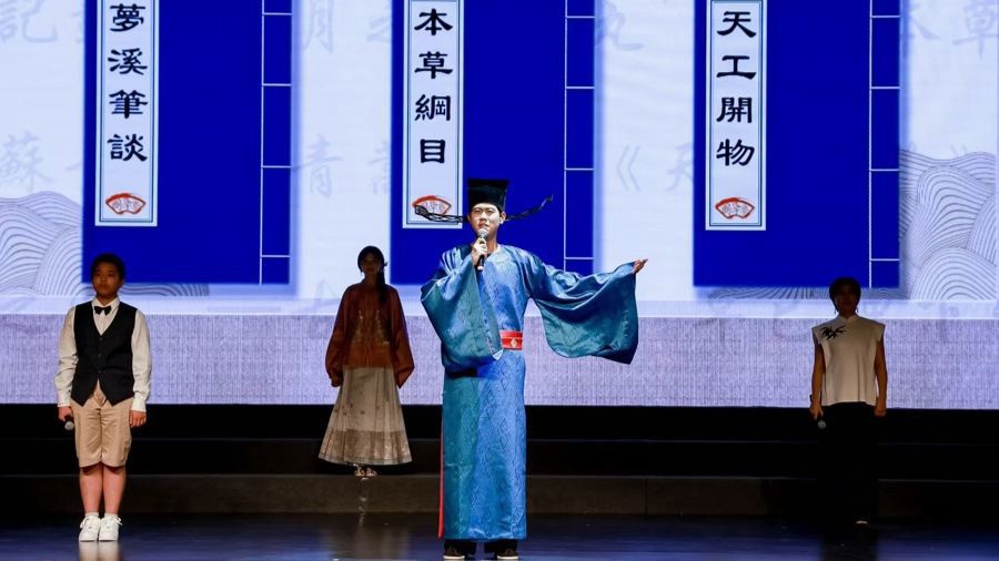 比赛由四个篇章组成,“沃土之根——东方智慧的创新胚芽”以《梦溪笔谈》《天工开物》等经典篇目,溯源中华文明智慧基因。“脊梁之魂——山河作证的勇气史诗”,通过《在太空读书是宇宙级浪漫》《沧浪之水》等作品,致敬一代代奋斗者的精神史诗。“破茧之翼——人机共生的黎明时刻”,以《织梦》《智能时代》等篇目,探讨科技与人文的深度融合。“征途之光——吾土吾民的未来答卷”,借《光的赞歌》《2035,我从一滴汗水里看到了未来》等朗诵,刻画普通人与国家发展同频共振的现代化进程。